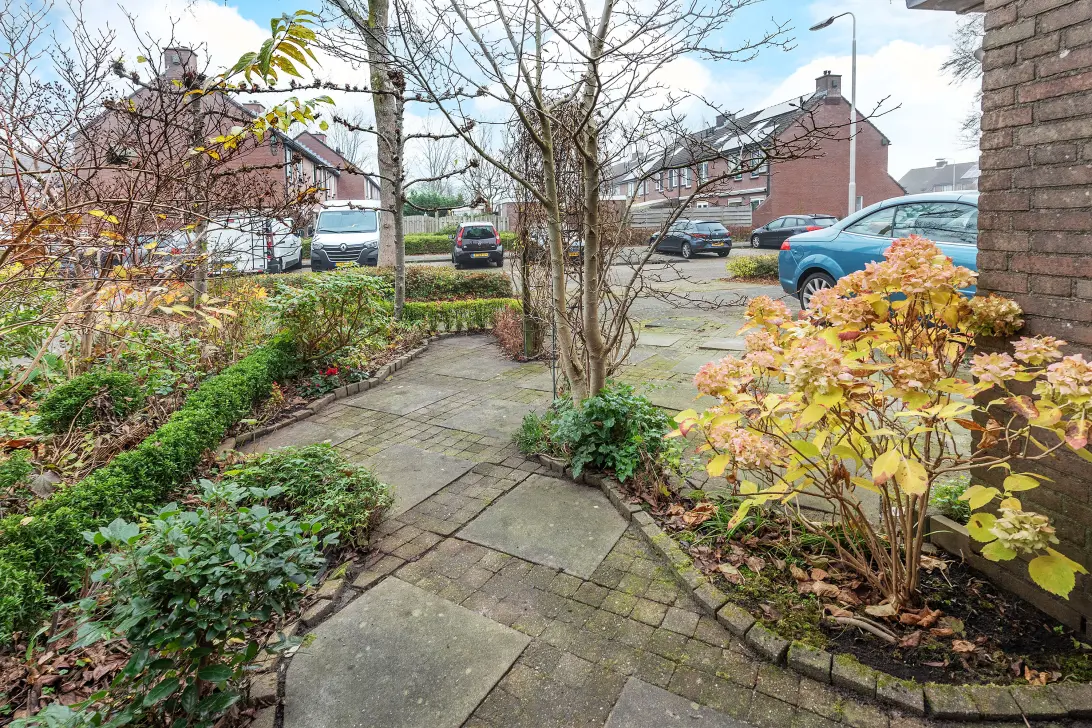 Diepe achtertuin op het zonnige zuidoosten met een buitenkraan en een zonnescherm aan de achtergevel. De achtertuin is bereikbaar via de openslaande deuren én via de achterom. Achterin staat een handige berging, ideaal geschikt voor het stallen van de fiets en tuinspullen. Ook is er een ruime voortuin met plaats voor het parkeren van de auto. Door de ligging van de meterkast aan de voorzijde kan hier ook relatief eenvoudig een oplaadpunt voor een elektrische auto gerealiseerd worden.