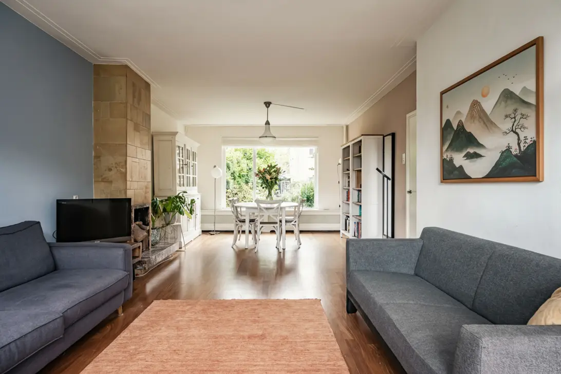 This charming 1950s terraced house is a perfect family home, featuring an exceptionally deep backyard (approx. 23 meters) with a detached brick shed and rear access. With a living area of 143 m², the home offers a spacious living room with a fireplace and no fewer than 5 bedrooms. It is located in the peaceful and green "Geleerdenwijk" neighbourhood, close to schools, shops, the Groenendaal forest, the beach, and the dunes—a child-friendly area where children can safely play outside.