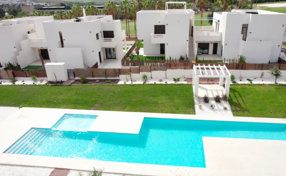 Deze Tussenwoningen hebben een erg mooie uitstraling doordat gebruik is gemaakt van natuurkiezelsteen deels verwerkt in de buitenmuren. Ze worden gebouwd in Algorfa op slechts 35 minuten van de luchthaven van Alicante. Een erg mooi gebied waar wandelaars, fietsers en mountainbikers heerlijk kunnen genieten van de prachtige groene omgeving. Het luxe golfresort heeft naast de diverse sportfaciliteiten zoals een gym, padel- en tennisbanen ook een 5 sterrenhotel met een Spa en veel diverse goede en betaalbare restaurants tot aan high-class restaurants. Een supermarkt en overige faciliteiten zijn op korte afstand te vinden.