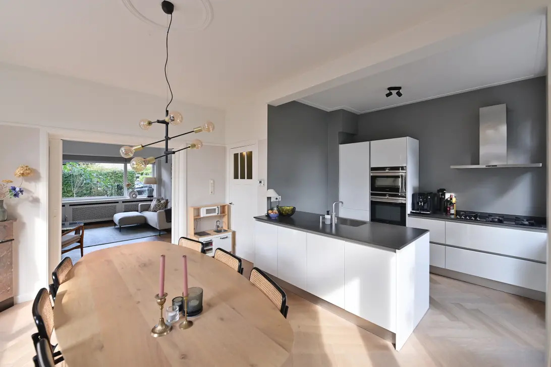 Het huis is volledig gemoderniseerd met behoud van de originele stijlkenmerken zoals glas in lood ramen en paneeldeuren.