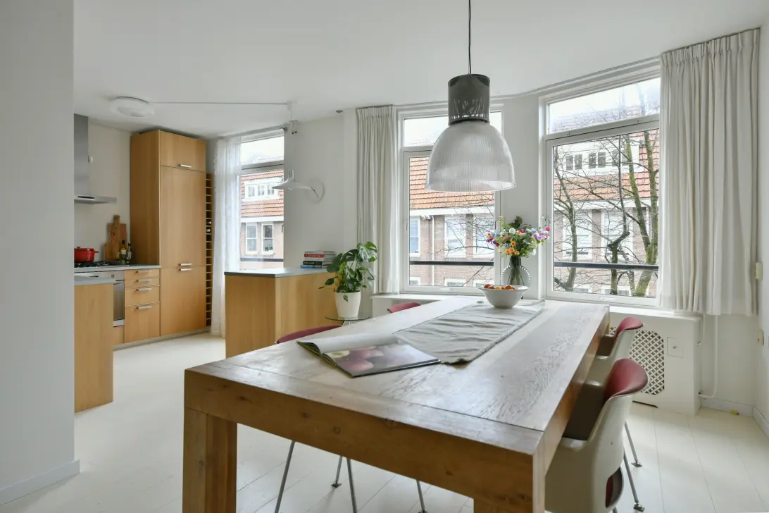 Lovely, light, tastefully renovated and well-designed flat of almost 60 m² with spacious attic room of 11 m2 and a balcony in the heart of the bustling Pijp neighbourhood, yet in a very quiet location.