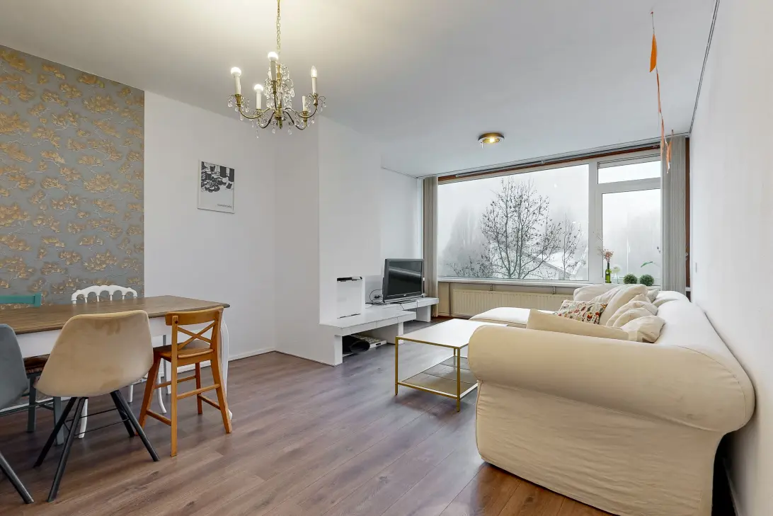 Located in the park apartment complex “Kerkzicht”, this light and spacious four-room apartment of 82 m² features a sunny west-facing balcony and a storage room in the basement. The apartment is situated on the third floor of the complex and therefore enjoys a lovely view over the spacious park and the Paaskerk church.