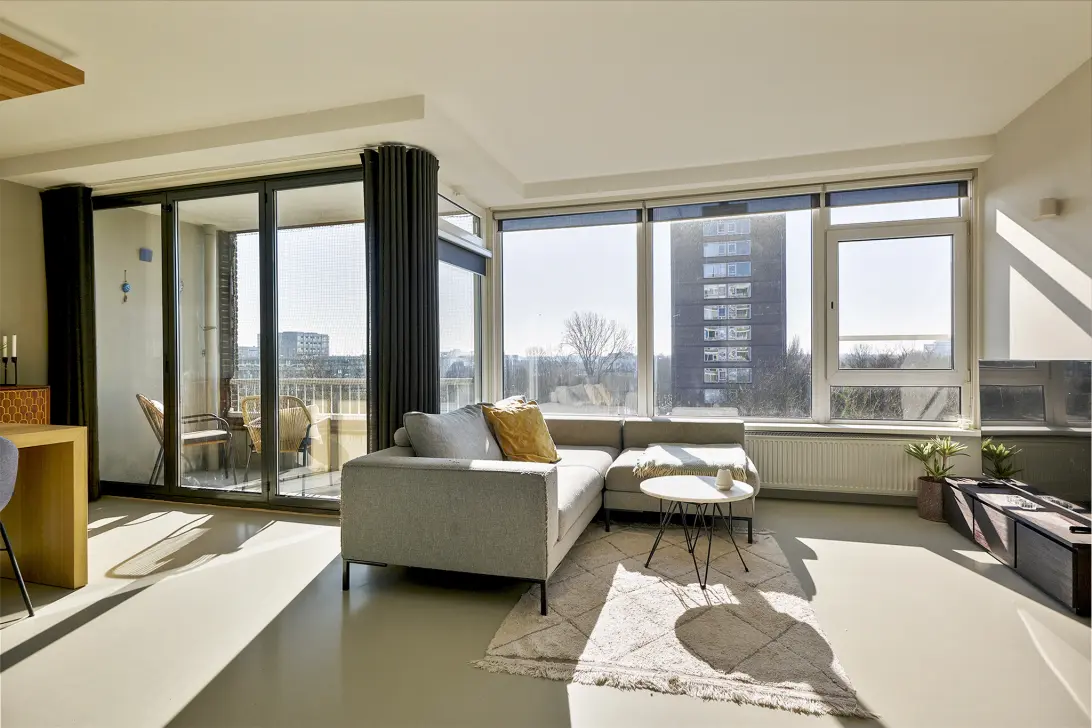 Hoogwaardig en doordacht verbouwd tweekamerappartement van 67m² met een balkon van 4m² op het zuiden en een (fietsen)berging van 6m² in de onderbouw. De woning is gelegen op de zesde verdieping van een goed onderhouden appartementencomplex. Dit fijne appartement beschikt over grote raampartijen waardoor er veel natuurlijk licht binnenvalt. De woning heeft een ruime woonkamer, een fijne slaapkamer en een moderne keuken en badkamer. Vanaf het balkon geniet u van een vrij uitzicht en volop privacy. De erfpachtcanon is reeds eeuwigdurend afgekocht!