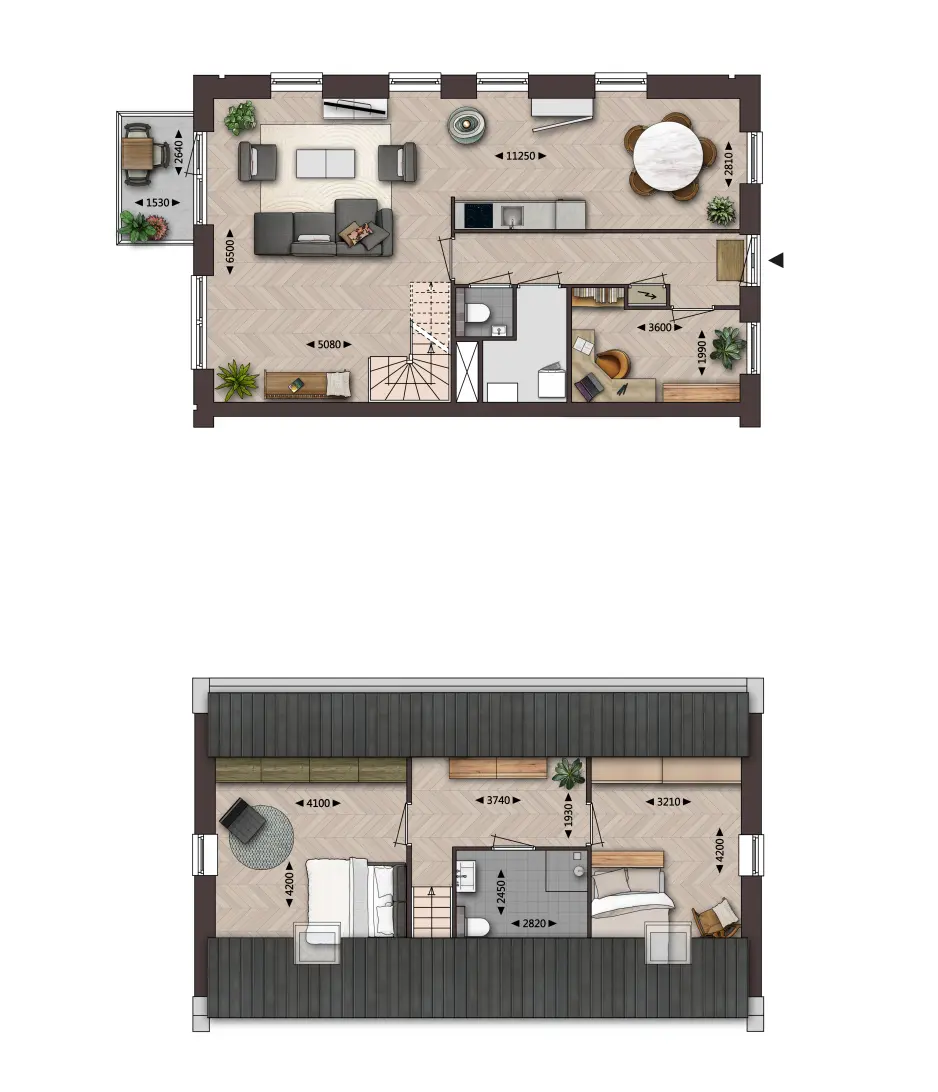 • Geschakelde tweekapper met grote achtertuin en achterom