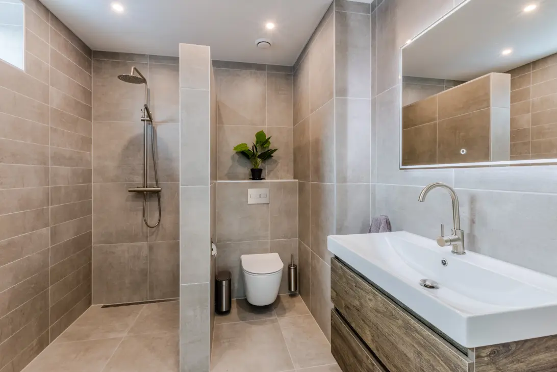 • Luxe badkamer met toilet, wastafel en inloopdouche