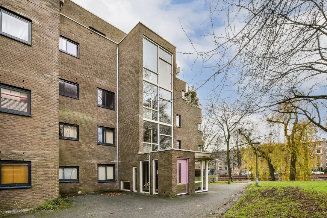 Het appartement is gelegen op een rustig schiereiland "Kop van Jut" met alleen bestemmingsverkeer, maar op korte afstand van zowel De Baarsjes, het Westerpark als de Jordaan. De omgeving wordt gekenmerkt door veel groen. Het Westerpark en het Erasmuspark zijn makkelijk en snel met de fiets te bereiken.