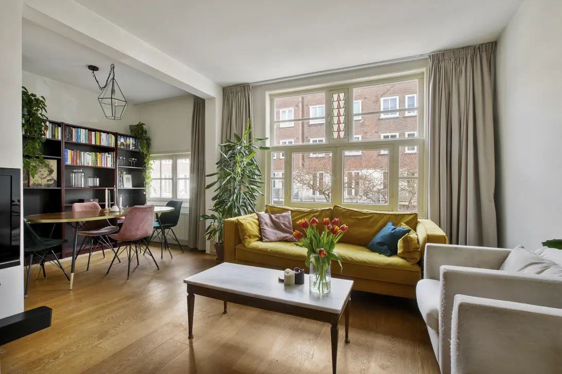This apartment boasts a prime location in De Baarsjes, in the West district. For daily groceries, you can visit various supermarkets (Albert Heijn, Dirk van den Broek, and Jumbo) or one of the many artisanal fresh food shops on the trendy "Jan Eef" neighborhood (Fort Negen, Caseus, and Grapedistrict). Great restaurants and cafes such as De Neef van Fred, Daalder, White Label Coffee, Cafe Cook, and De Biertuin West are all within walking distance. For more hotspots, Oud-West is just around the corner, including the Foodhallen, the Ten Katemarkt, and Jan Pieter Heijestraat, home to various specialty shops. The apartment is surrounded by greenery: Vondelpark, Erasmuspark, and Rembrandtpark are all within 5 minutes. Amsterdam city center is 10 minutes away.