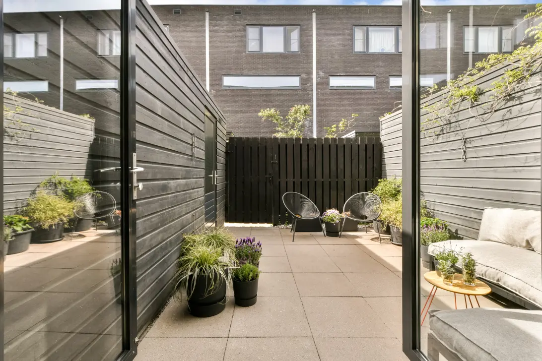 • Door de poort is er een groene gemeenschappelijke binnentuin te bereiken