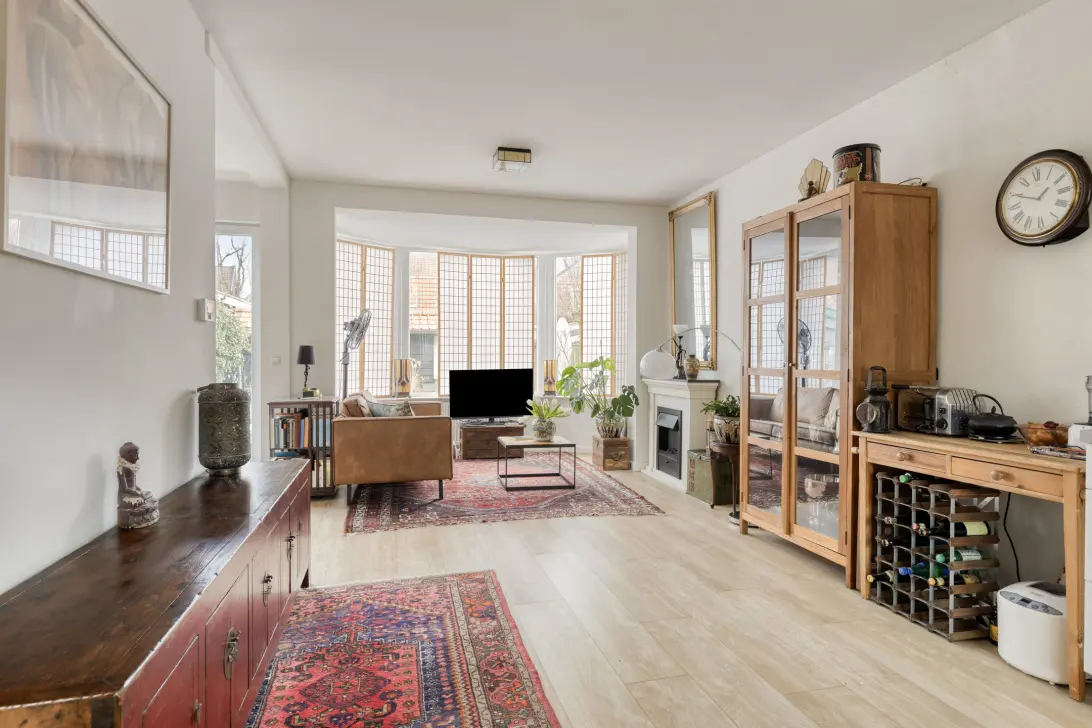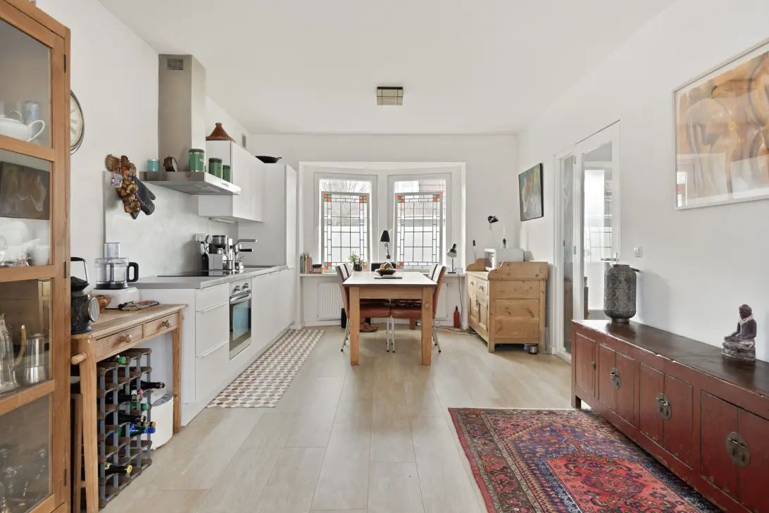 Open verbinding met leefkeuken, met punterker, en L-vormige living. Houtlaminaatvloer. Keurige keuken, voorzien van betonlook werkblad met spatwand, inductie kookplaat en afzuigkap, combi-oven/ magnetron, koel-/ vriescombinatie en vaatwasser. Living aan achterzijde uitgebouwd met nieuwe erker. Dubbele openslaande deuren naar 14 meter diepe achtertuin op het oosten, de woning beschikt over een nieuwe schuur, voorzien van elektra en een achterom. Dankzij de uitstekende isolatie is de schuur tevens zeer geschikt voor een praktijk aan huis, mede door de aparte, vrije toegang.