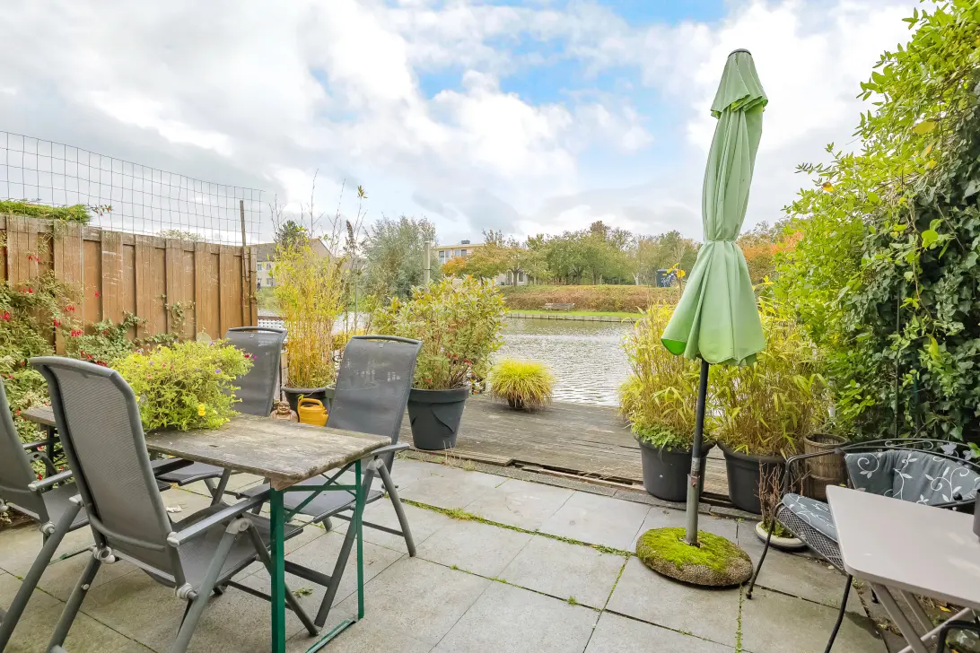In een rustige, doodlopende straat gelegen verrassend ruime eengezinswoning, welke aan de achterzijde is gelegen aan een brede waterpartij met een flink zonneterras op het zuid-westen en een tot aan de waterkant lopende vlonderpartij. Ideaal is ook het kunnen parkeren op eigen terrein aan de voorzijde (oprit over de breedte van de woning) én een inpandige garage!