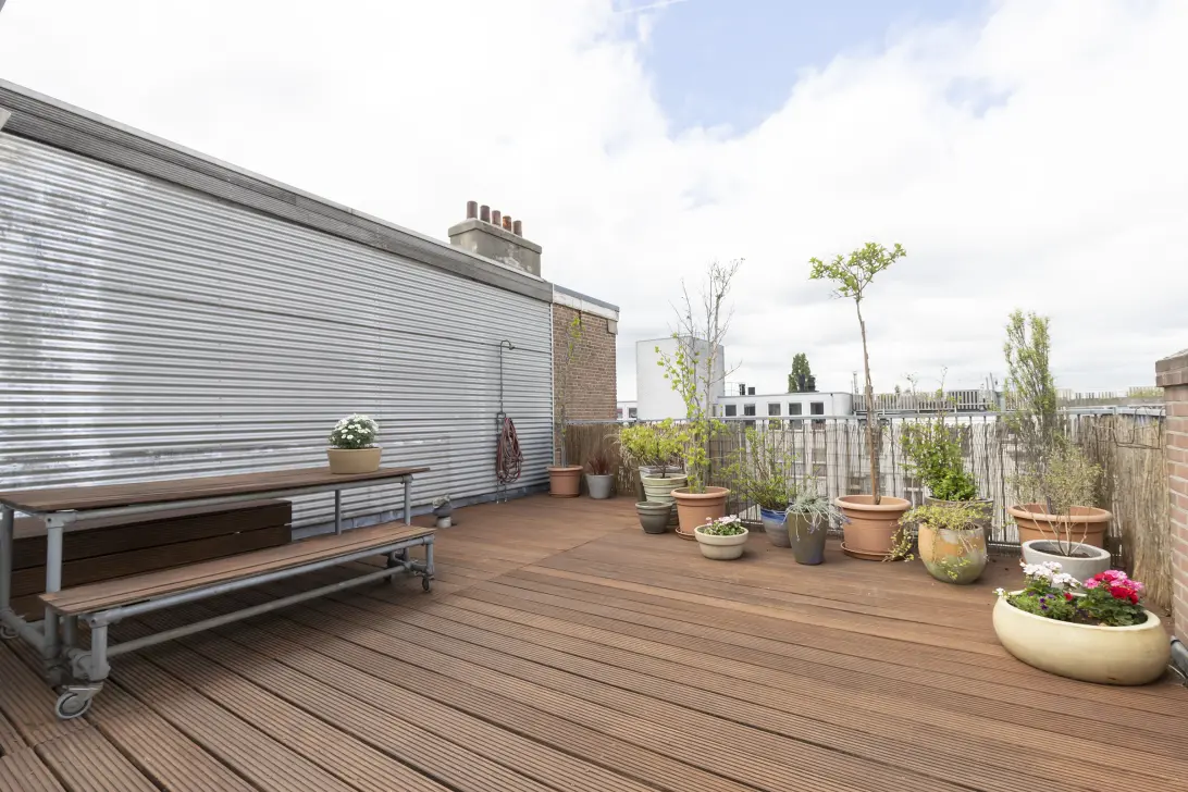 Op de bovenste etage bevindt zich een ruime slaap- of werkkamer met toegang tot het absolute hoogtepunt van dit huis: een royaal dakterras van 33 m², gunstig gelegen op het zuidwesten. Een plek om van de zon te genieten, met vrij uitzicht over de stad – inclusief een buitendouche voor de zomerse dagen. Er is evt. een mogelijkheid om de kapverdieping uit te bouwen. Hiervoor is wel toestemming van de VVE nodig en een omgevingsvergunning vereist.