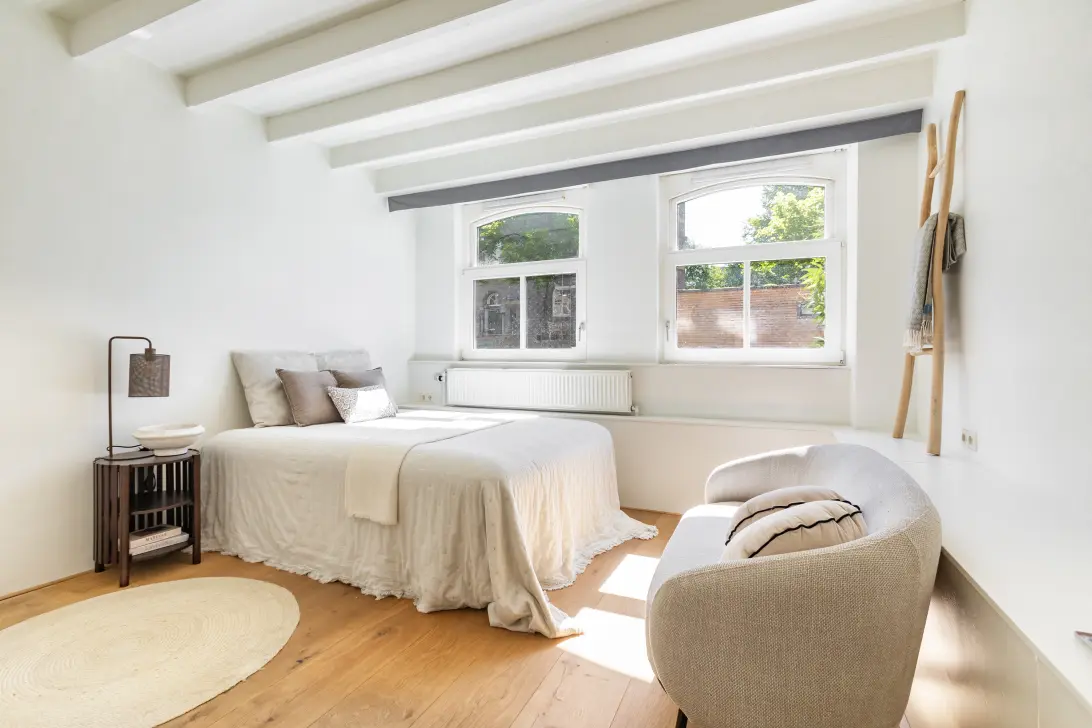 Het appartement beschikt over twee volwaardige (slaap)kamers, een derde kamer geschikt als kantoor of extra slaapvertrek, inloopkast en royale badkamer met ligbad, douche en dubbele wastafel die zich bevindt op de slaapverdieping.