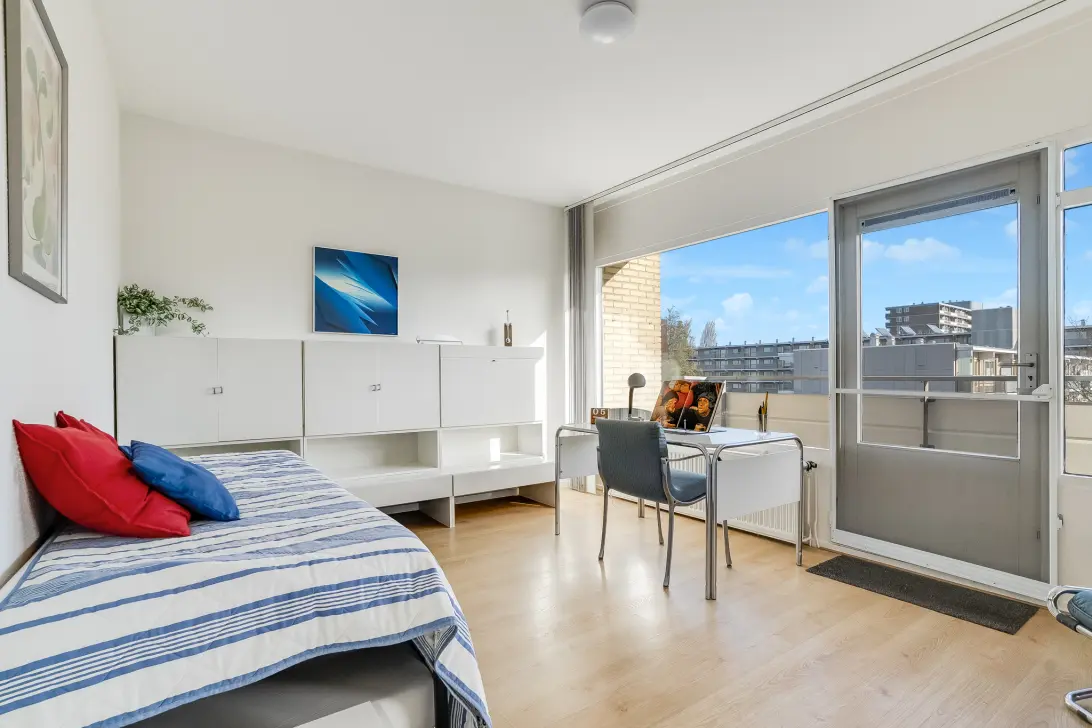 De woning beschikt over één ruime slaapkamer aan de zijde van de entree. De kamer heeft voldoende plaats voor een tweepersoonsbed en een grote kast.