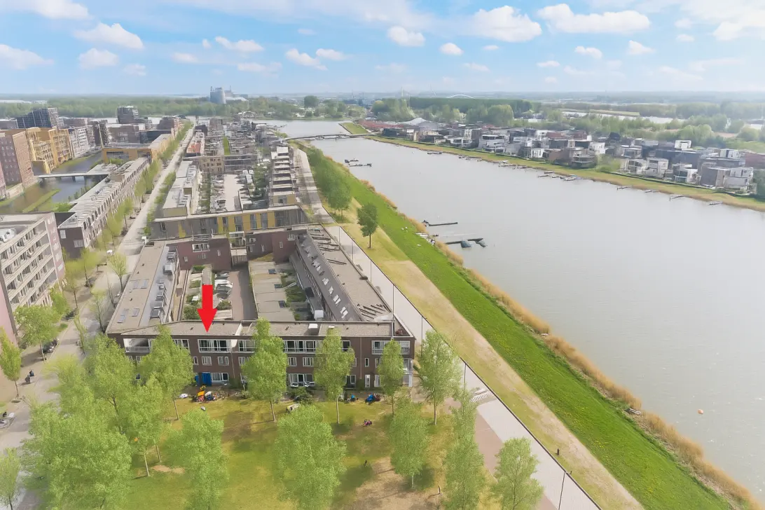De woning ligt in een gewild gedeelte van IJburg, ten zuiden van de drukke IJburglaan en direct aan een autovrij plantsoen. Het water, waar in gezwommen kan worden, is op slechts 30 meter afstand. In de nabijheid zijn privé ligplaatsen te huur voor een bootje.