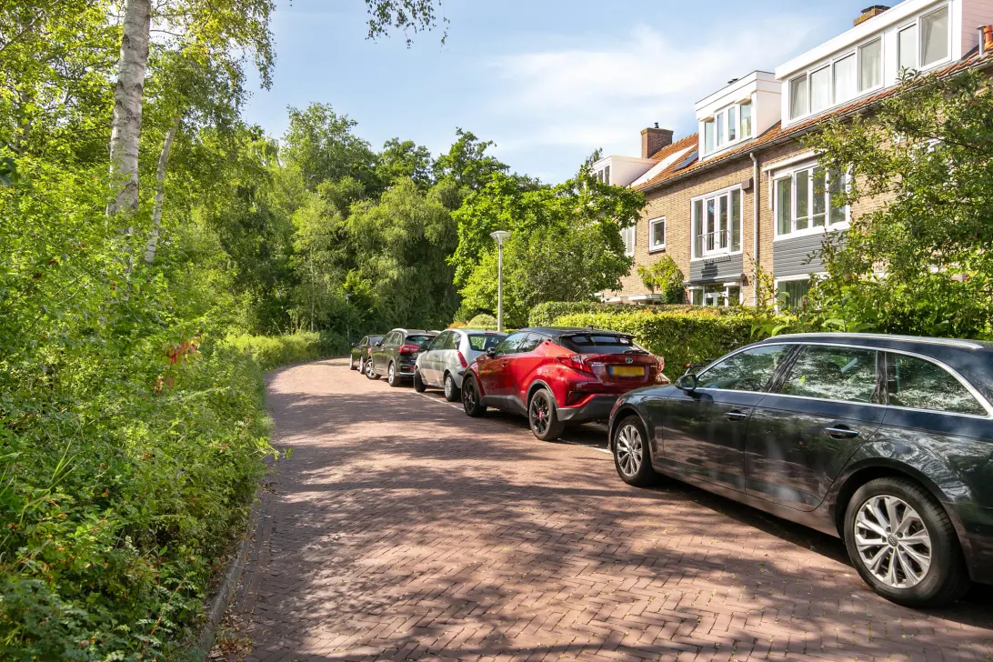 Are you looking for a home in a gorgeous, wooded area yet close to the city? This special ground-floor corner apartment offers the best of both worlds. Situated on the edge of the Amsterdamse Bos, you’ll enjoy peace, space and nature here. The property features a generous front, side and back garden (approximately 145 m²) and a brick storage shed. The back garden faces north, but thanks to its depth there is always a sunny or shaded spot to be found. The front garden faces south, perfect for enjoying the sun all day. From the property you look out over a green park—a serene place to come home to.