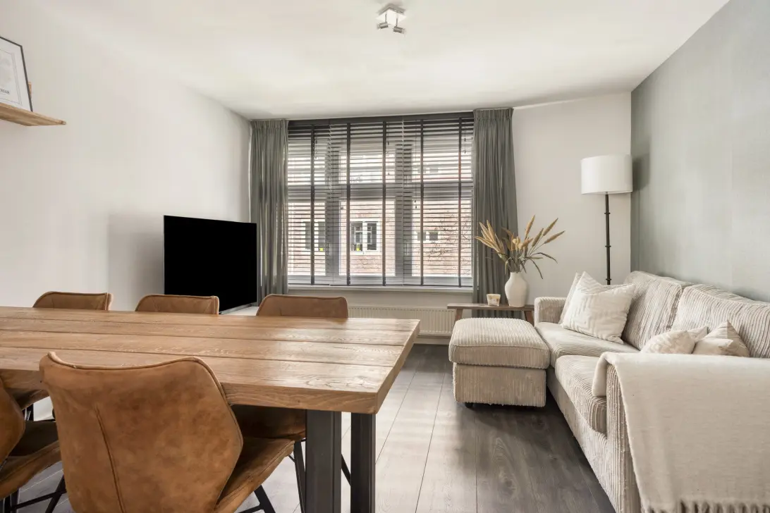The entrance to the apartment is located on Mauvestraat. What makes this location unique is that it is remarkably quiet, which is a surprise given its central setting. Through the central entrance, you reach the apartment via the staircase, located on the first floor. You enter the hallway, which provides access to all rooms and ensures a pleasant layout.