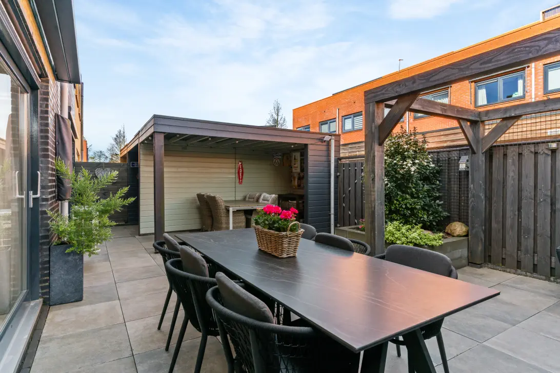 Bij binnenkomst in de woning treft u een ruime hal, die toegang biedt tot een luxe en modern afgewerkt toilet (2020) met fonteintje. Tevens bevindt zich hier een praktische bergkast met aansluiting voor de wasmachine. De royale woonkeuken is modern uitgevoerd en beschikt over diverse inbouwapparatuur. Dankzij de praktische indeling en de ruime opzet is dit een fijne plek om te koken en te verblijven. Via de vaste trap in de woonkamer bereikt u de 1e verdieping. Hier komt u uit op een ruime overloop met toegang tot drie slaapkamers en een aparte kantoorruimte (deze kan ook gebruikt worden als vierde slaapkamer). Tot slot heeft deze woning nog een fraai aangelegde zeer brede achtertuin met mooie overkapping en berging.