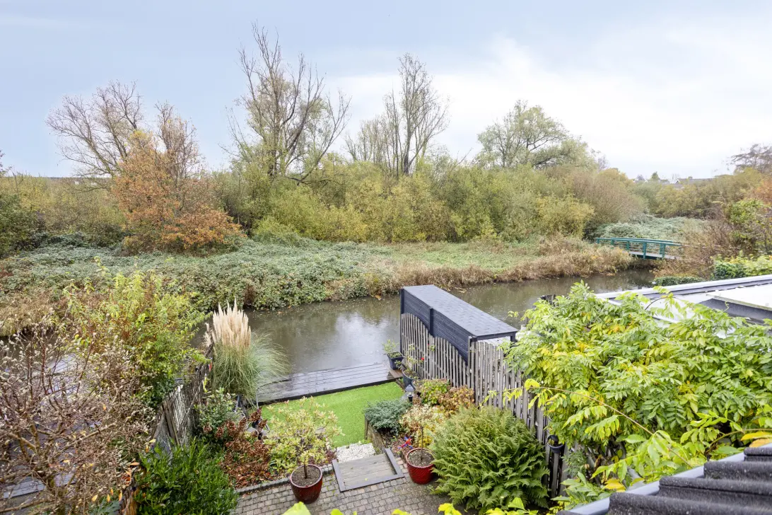 De achtertuin is gesitueerd op het noordoosten en biedt volop ruimte om te genieten van het buitenleven. Aan de achterzijde van de tuin grens je aan vaarwater en heb je uitzicht over groen. De keurige staat van de tuin zorgt voor een verzorgd geheel.