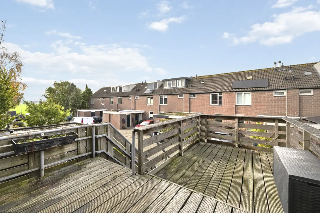 Deze maisonnette is op de eerste verdieping voorzien van een zonnig terras welke is gesitueerd op het westen en op de tweede verdieping voorzien van een terras welke eveneens is gesitueerd op het westen en bereikbaar is vanuit de master-bedroom. Aan de voorzijde bevindt zich op de begane grond een stenen berging voorzien van elektriciteit.