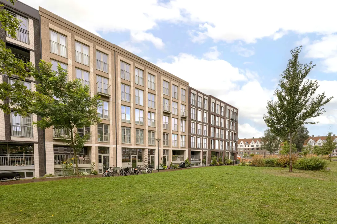 This beautifully and luxuriously finished ground-floor apartment features, among other things, a private parking space in the basement and an elevator, located on the fourth floor of a modern, recently completed complex (2020). Thanks to its elevated position, the apartment offers breathtaking views of nearby buildings, such as the Pontsteiger, the classic architecture of the Spaarndammerbuurt, and the recreational green park at the front of the building. At the rear, the terrace will soon overlook a planned waterway; this is scheduled to be completed by the end of this year.