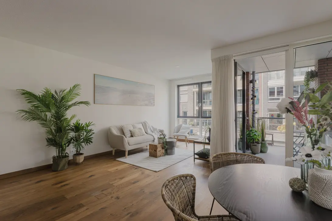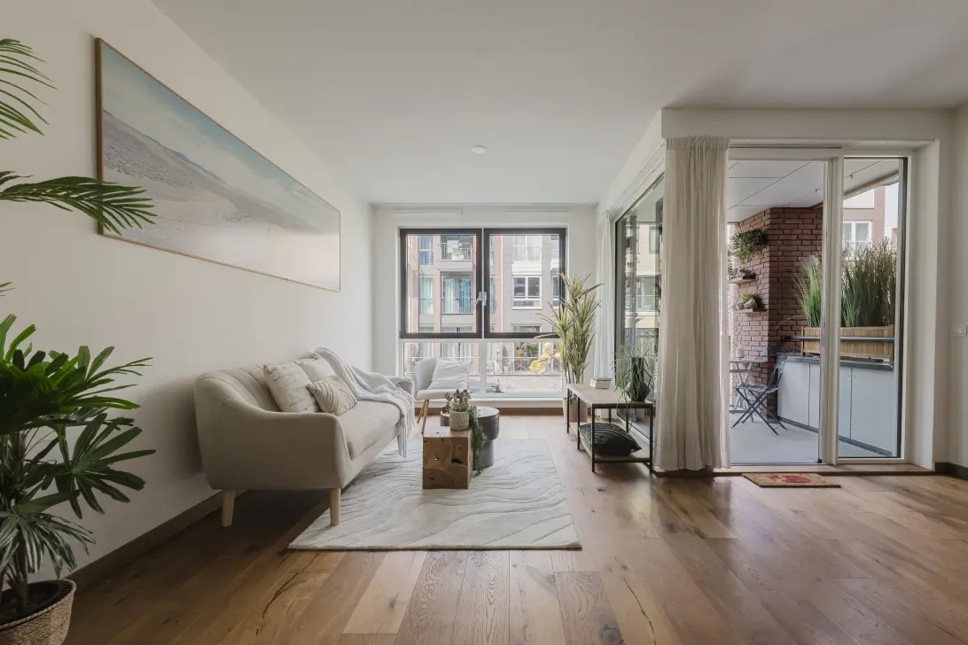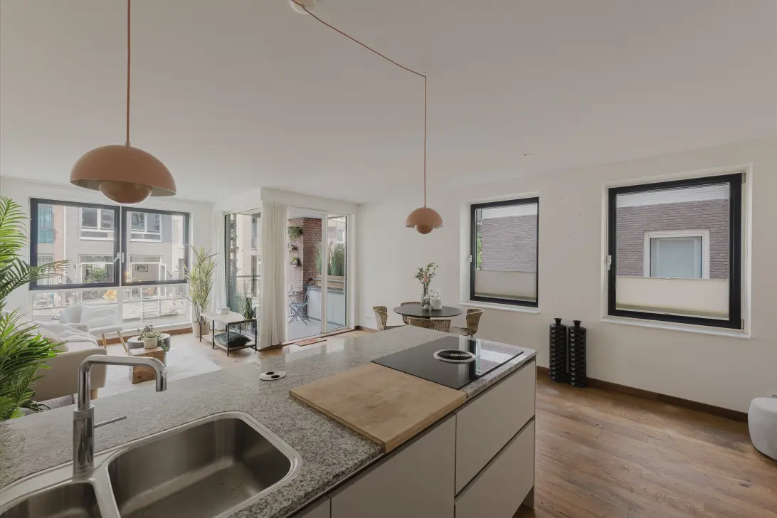 Stylish and Energy-Efficient 74 m² Apartment on the Mezzanine with Two Bedrooms and a Lovely Balcony Overlooking the Water – with Direct Access to a Private Mooring. The property includes a storage room and a private parking space. The Enbloc apartment complex is located on one of the most beautiful islands in the Houthavens.