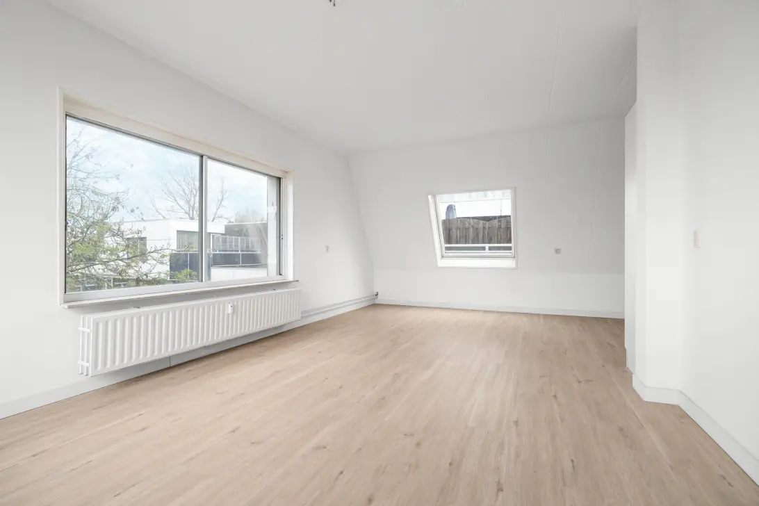 Aan de achterzijde van de woning bevinden zich twee goed bemeten slaapkamers. Beide kamers zijn geschikt als volwaardige slaapkamer, werk- of logeerkamer.