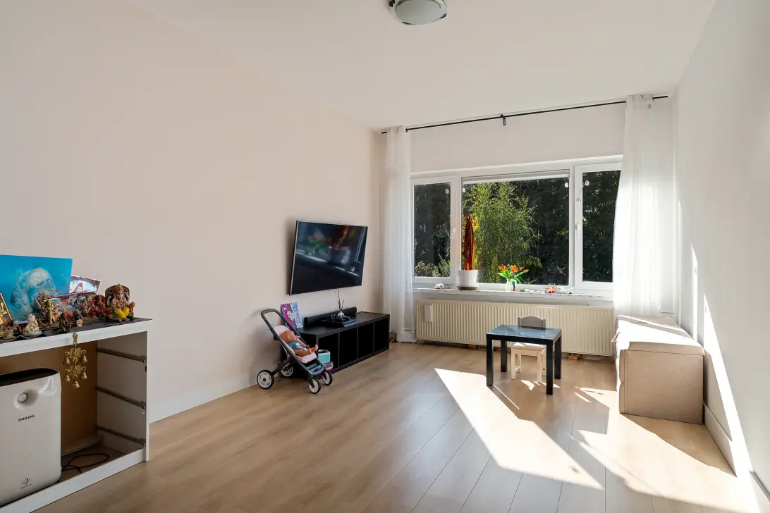 + Ruime en lichte woonkamer met nieuwe vloer en strak stucwerk (2025)