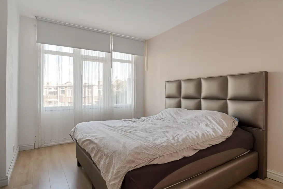Naast de woonkamer bevindt zich een ruime slaapkamer, eveneens aan de voorzijde gelegen. De overige twee slaapkamers liggen aan de achterzijde en kijken uit op het balkon, waaronder de hoofdslaapkamer aan de rechterzijde. Tussen beide kamers in vind je de praktische keuken, voorzien van voldoende kastruimte en toegang tot het balkon.