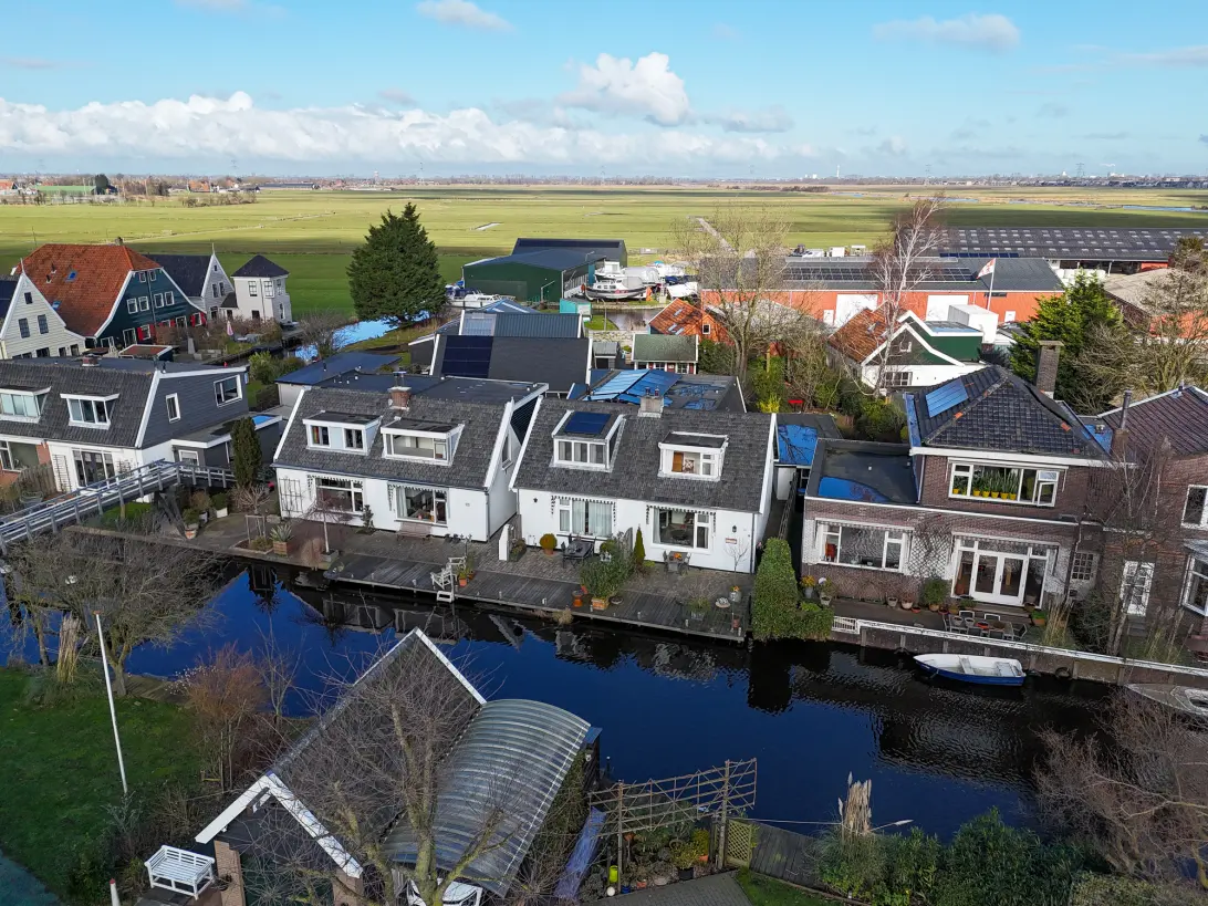 Verscholen achter de entreewoning ligt aan het dwarspad een blok van vier gezinswoningen. Elk met een aparte berging en plenty parkeermogelijkheden op het gedeelde terrein. De hoekwoningen hebben zelfs een parkeerplek op het eigen erf. Het uit natuurlijke materialen opgetrokken pand heeft de uitstraling van een boerenschuur, door de dwarsplaatsing op de hoofdader van Westzaan. De verkregen ruimte wordt op een inventieve manier ingezet. Drie bouwlagen, met een vrij in te vullen ruimte op de tweede verdieping. Hier komt de technische annex facilitaire ruimte, bereikbaar via een vaste trap. Op de eerste verdieping zijn drie slaapkamers, plus een lekker ruime badkamer. Deze heeft, net als de slaapkamer aan de kant van het pad, een dakraam. De slaapkamer aan de tuinzijde genieten van het uitzicht over het landschap door de extra hoog opgetrokken gevel middels extra hoge kiep-/ draairamen.