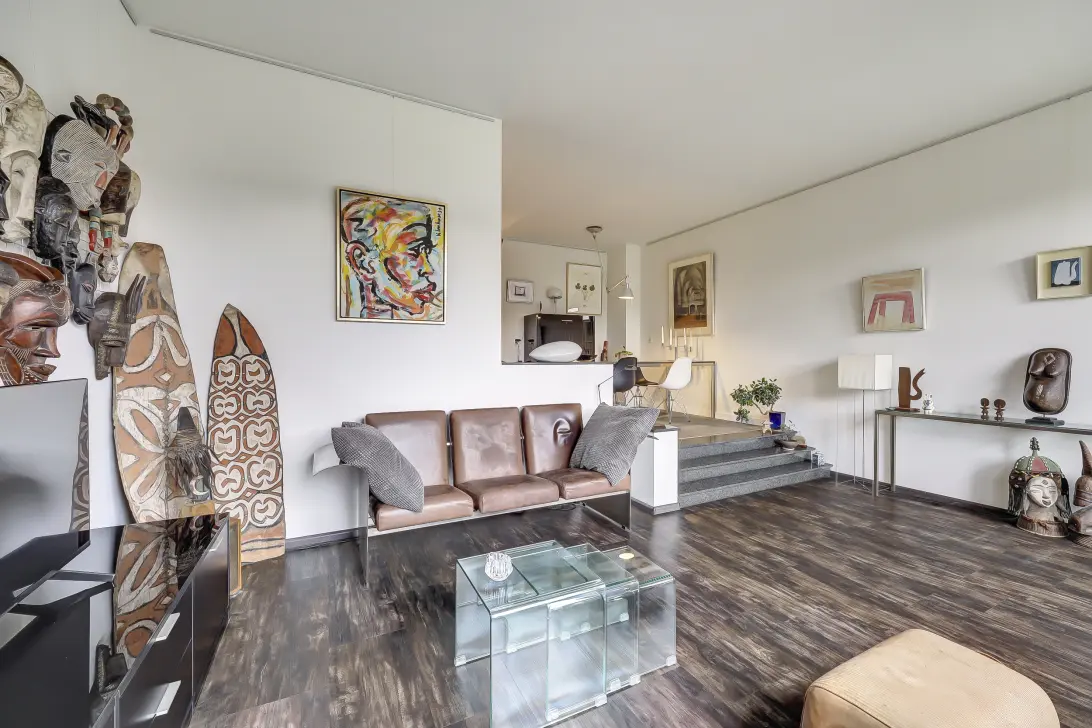 Je betreedt de woning via een ruime hal met garderobe en een praktische trapkast. Vanuit hier loop je direct de eetkamer in. Aangrenzend bevindt zich de woonkamer, die via een trapje bereikbaar is en dankzij de grote raampartijen een prettige lichtinval heeft.