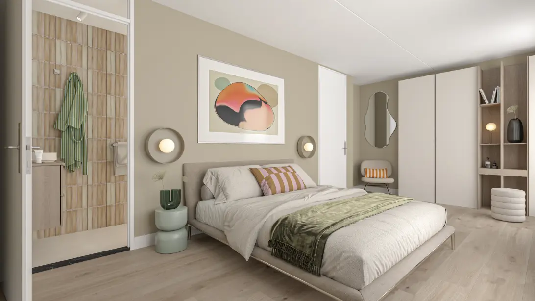 Via de groene binnentuin zijn de gebouwen met elkaar verbonden en vind je snel de weg naar je huis. Onder de koopappartementen van Boegbeeld zit een parkeergarage en je fiets parkeer je in de gezamenlijke stalling op de begane grond.