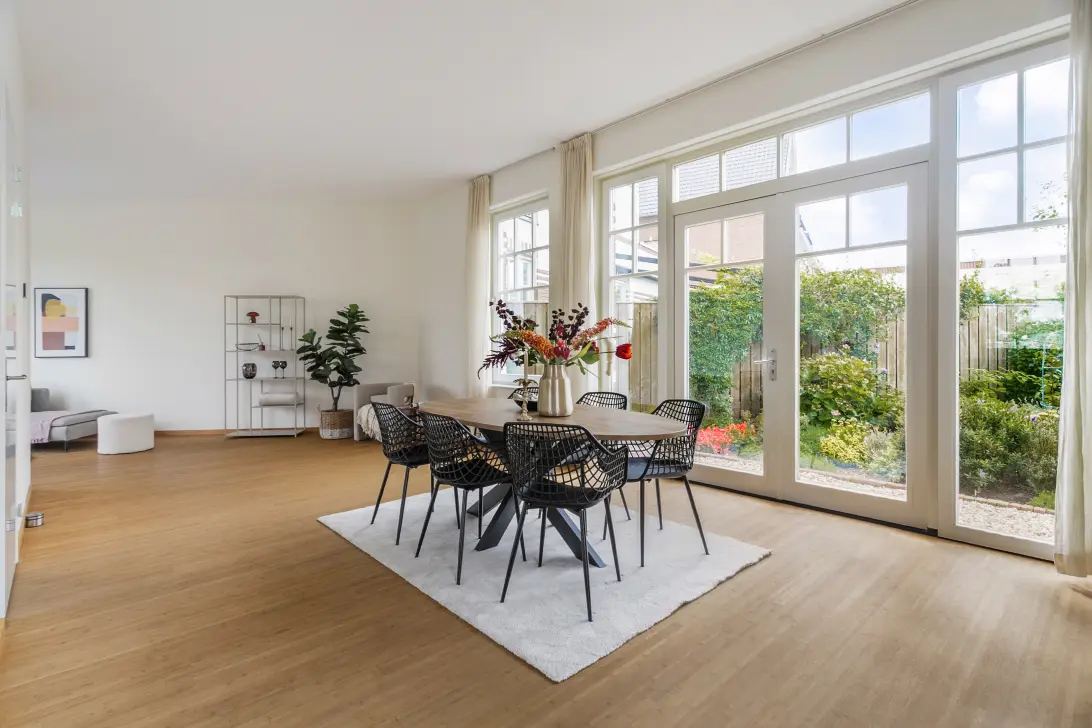 De mooie hoge plafonds van 3.20 m en de hoge ramen geven dit huis een bijzondere uitstraling. De ruime woonkamer met open keuken, 6 slaapkamers, een vrijstaande garage en een fijne achtertuin op het zuiden maken deze royale twee-onder-een-kapwoning bovendien een ideaal gezinshuis in de stijlvolle nieuwe wijk Weespersluis.