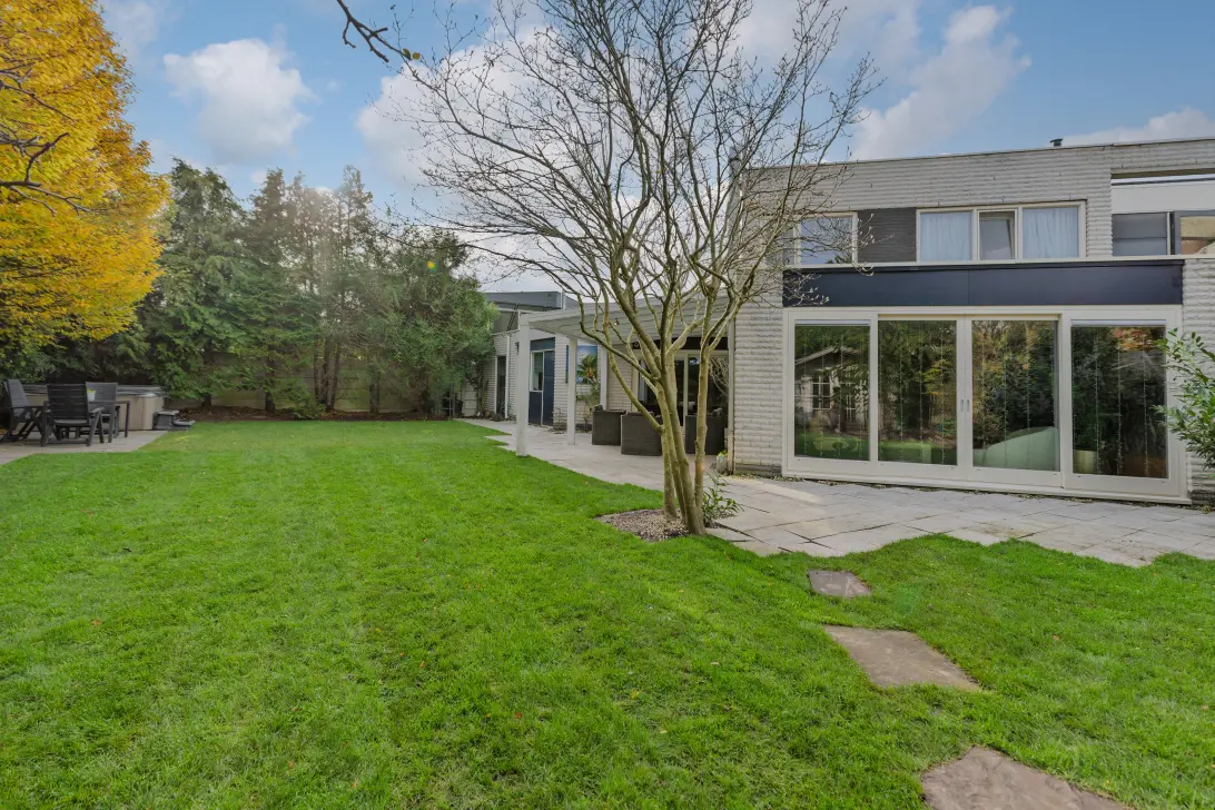 De hoekvormige achtertuin van circa 350 m² biedt dankzij de royale afmetingen op elk moment van de dag een zonnige plek. Bovendien bestaat de mogelijkheid tot het realiseren van een buitenzwembad; de vergunning, gat, pomp en water aan-/afvoer zijn reeds aanwezig. De tuin biedt voldoende ruimte voor meerdere zitgelegenheden en wordt omgeven door groen, wat bijdraagt aan optimale privacy.