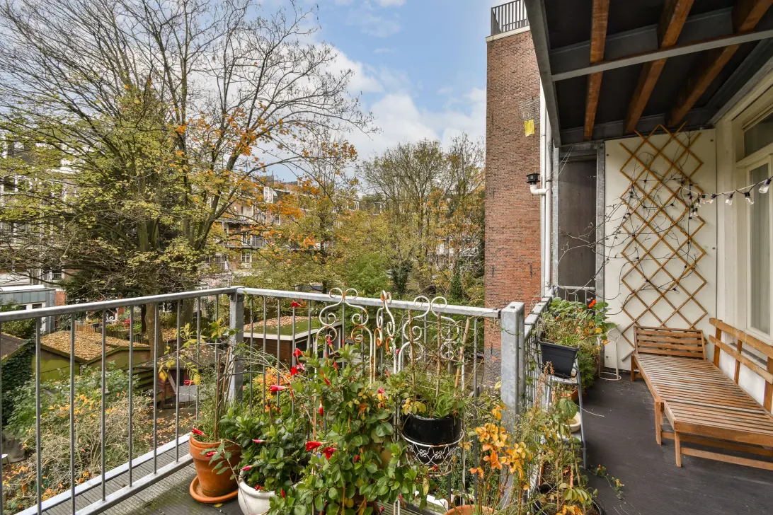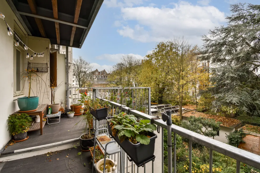 - Verdieping 3: Frans balkon aan de voorzijde en een balkon aan de achterzijde van circa 9 m².