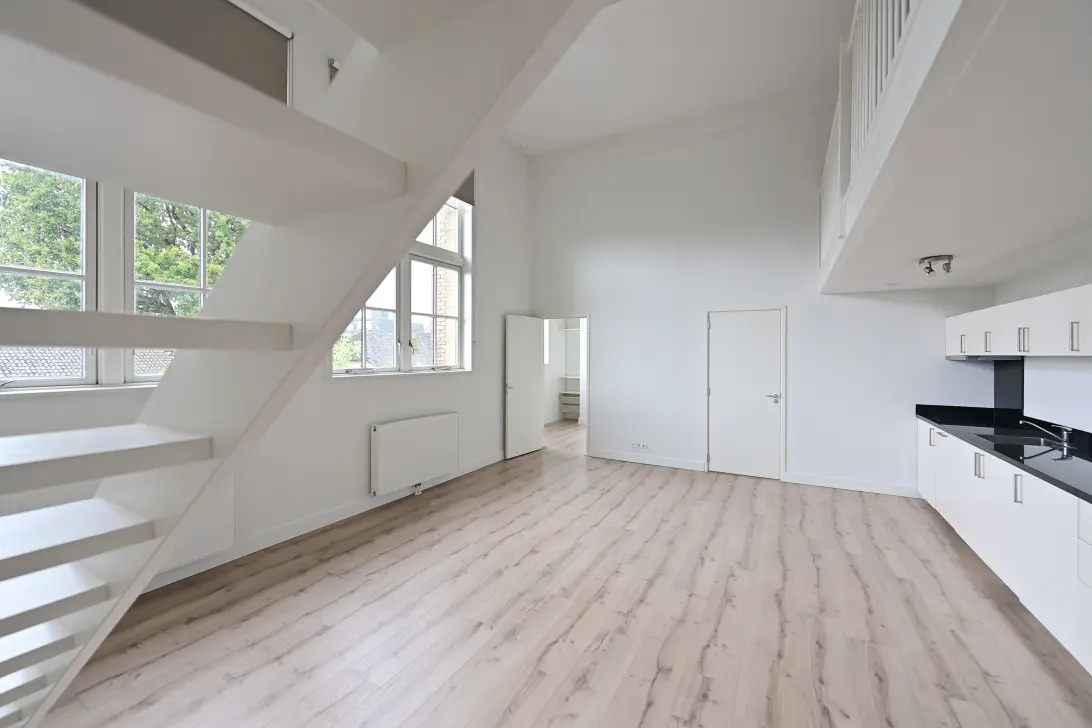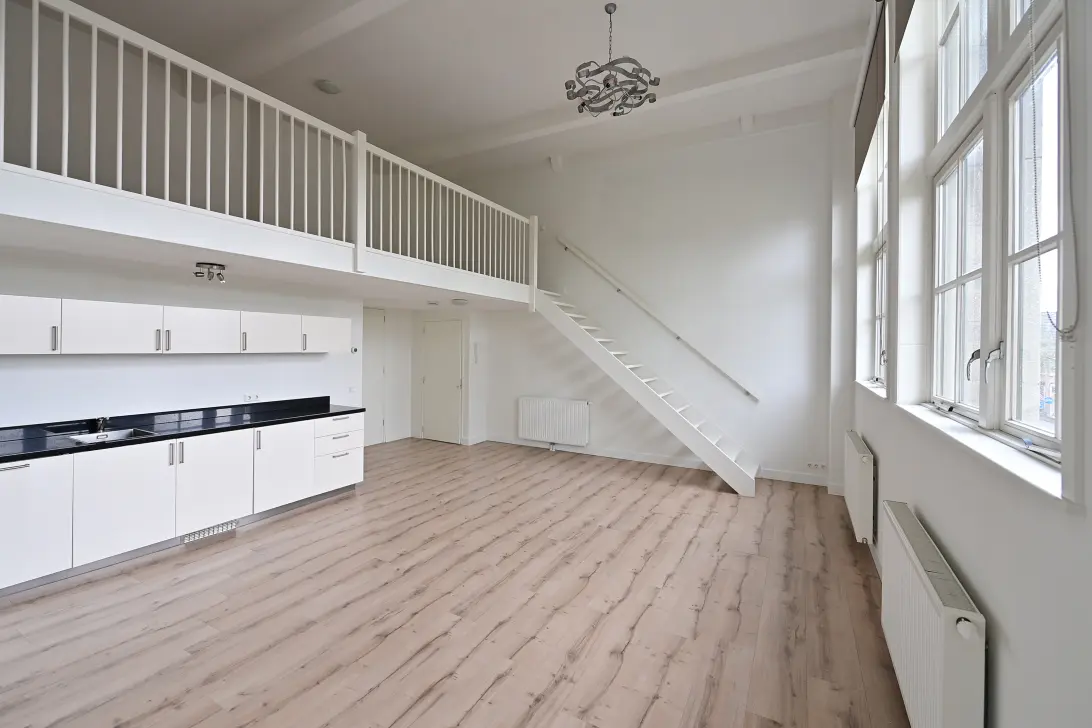 Appartement; royale living met fraaie raampartijen met roedeverdeling en het circa 4.70 meter meter hoge plafond doet erg ruimtelijk aan. Meterkast, bergruimte met aansluitingen voor wasmachine, elektrische ketel voor cv en warmwater.