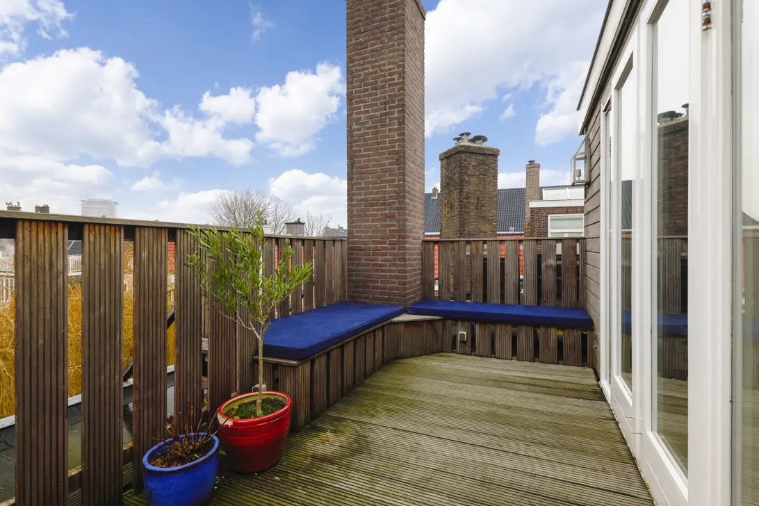 Beide slaapkamers geven toegang tot het zonnige dakterras met ingebouwd zitgedeelte. De badkamer beschikt over een ligbad, inloopdouche, wastafelmeubel met dubbele wastafels, zwevend toilet en een designradiator. De praktische bergzolder is via een vlizotrap te bereiken.