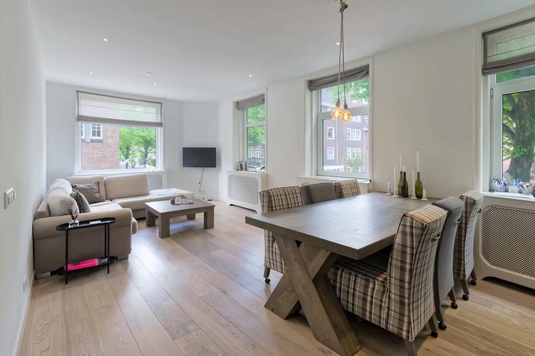 The apartment is located on the corner of Niersstraat and Dintelstraat in the lively and popular part of the Rivierenbuurt neighborhood, between Maasstraat and Europaplein/Scheldestraat. The charming Maasstraat offers all the shops you need for your daily groceries. There's also a wide range of charming cafés and good restaurants nearby. The Albert Cuyp Market and De Pijp district are a 10-minute walk away. The apartment is easily accessible by public transport (trams 4 and 12, RAI and Zuid train stations) and by car (S109 and S110 to the A10 and A2 ring roads), and there's ample parking. The peaceful Beatrixpark is a 5-minute walk away.