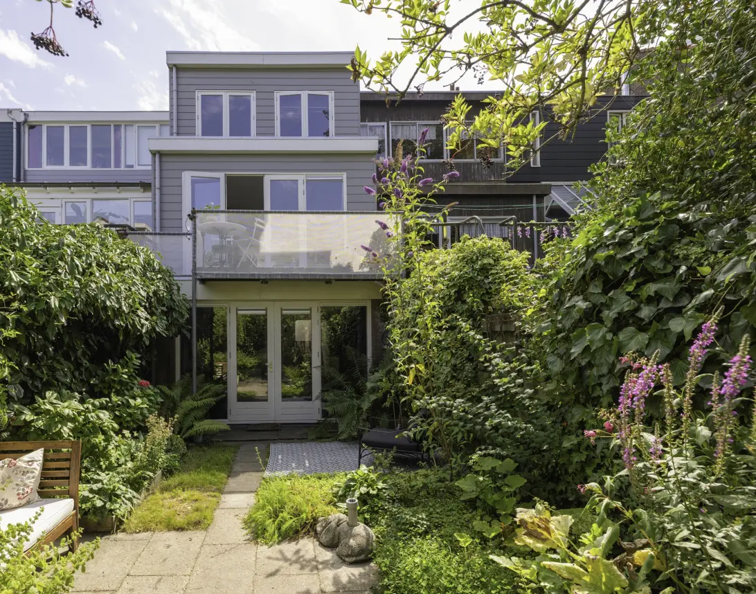 De zonnige, diepe tuin is een oase van rust en privacy. Hier kun je het hele jaar door genieten van buitenleven in de stad. De tuin voelt groen, ruim en besloten – een zeldzame luxe in Amsterdam. De poort geeft toegang tot het achterpad en het enorme speelplein. Hier vind je voor alle leeftijden sport- en speelmogelijkheden.