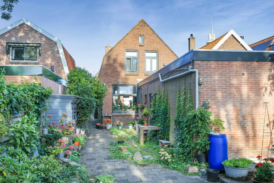 De achtertuin is met maar liefst 36 meter diepte en een breedte van 8 meter een absoluut hoogtepunt van deze woning. Gelegen op het zuidoosten geniet je hier de hele dag van de zon. Naast de woning loopt een steeg van 2 meter breed die directe toegang biedt tot de tuin, die tevens bereikbaar is vanuit de aanbouw en bijkeuken.