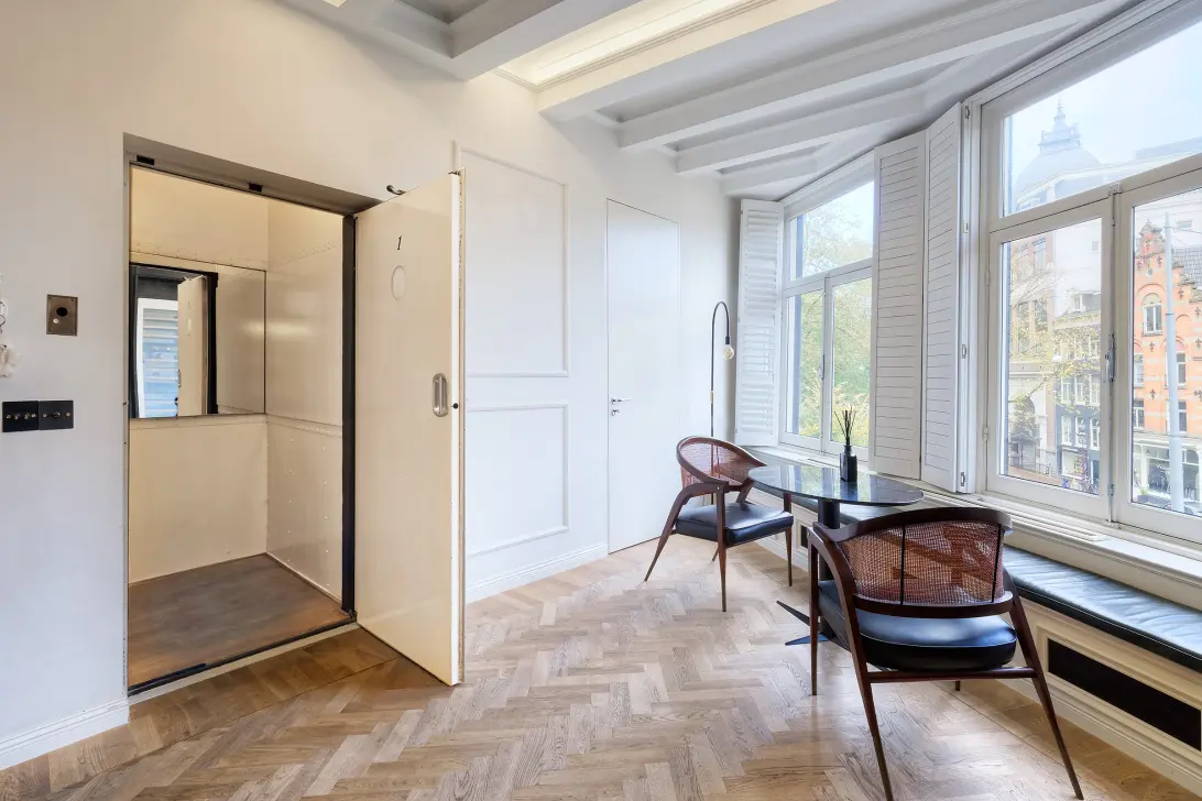 Luxurious living in an 18th century monumental building in the most central location of Amsterdam with all amenities within reach. That is what this extraordinary apartment on the Nieuwezijds Voorburgwal has to offer. This spacious, luxurious apartment (150m²) with two spacious bedrooms, two bathrooms and a very luxurious open kitchen is finished to a high standard with many custom cabinets and has a spacious storage room on the ground floor and a lift that opens directly into the apartment. This property, located (freehold), is located on the first floor of a building built in 1735 (national monument) and has a view over a small park, surrounded by typical Amsterdam architecture. This place offers you both a place of rest and the ultimate experience of the city. Would you like to experience this for yourself? Then make an appointment now for a viewing!