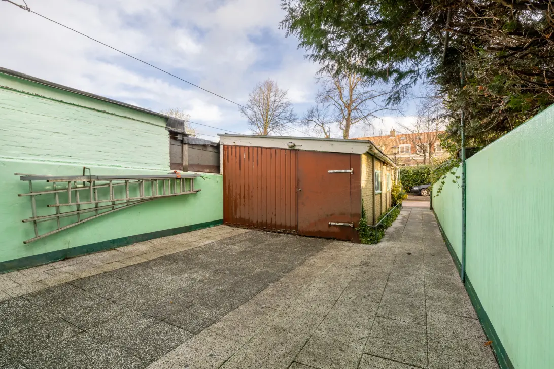 Achterin staat een vrijstaande garage van circa 27 m². Niet in perfecte staat, maar wél veelzijdig. Opslag, hobbyruimte, werkplaats of een stevige basis om te verbeteren. Hier ligt potentie.