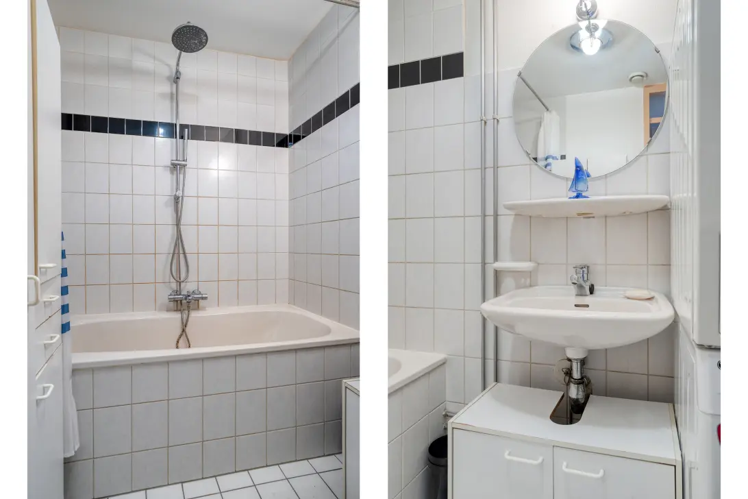 De badkamer beschikt over een ligbad, wastafel en aansluiting voor de wasmachine. Daarnaast is er een separaat toilet aanwezig. De twee slaapkamers zijn goed van formaat en bieden verschillende gebruiksmogelijkheden, zoals een hoofdslaapkamer, logeer- of werkkamer. De woning is netjes onderhouden en kan direct betrokken worden – enkel nog afwerken en naar eigen smaak inrichten.