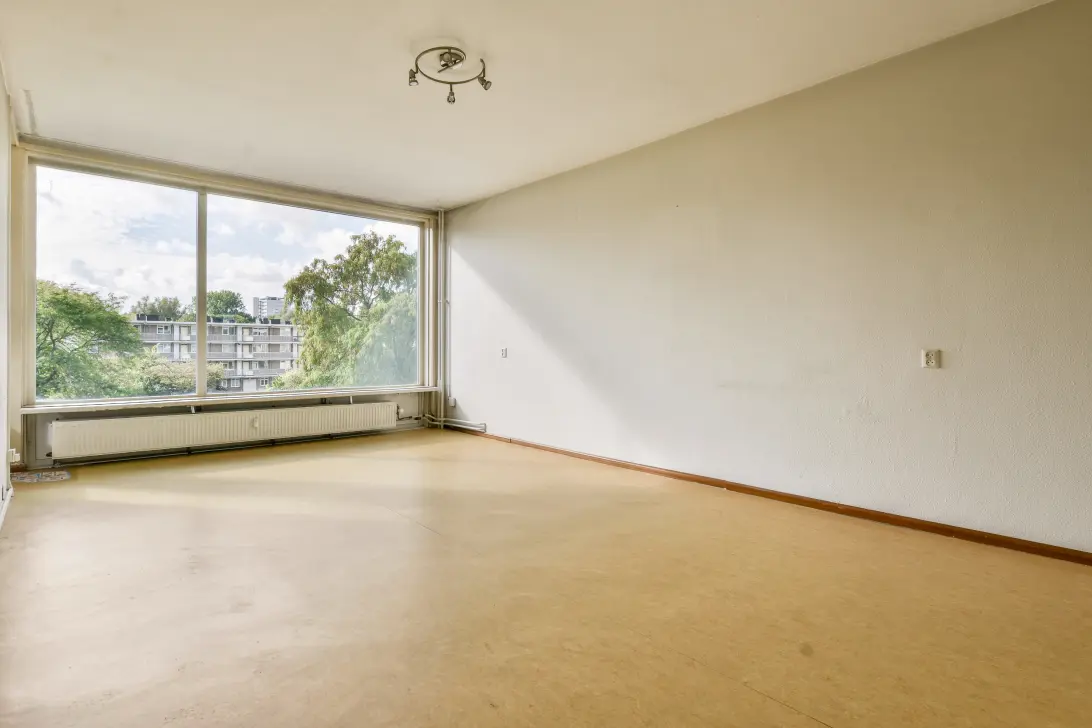 Op dit moment is er één ruime slaapkamer aan de achterzijde van de woning. Deze kamer biedt directe toegang tot het balkon en beschikt over voldoende ruimte om te worden opgesplitst in twee afzonderlijke kamers, waarmee een tweede slaapkamer kan worden gerealiseerd.