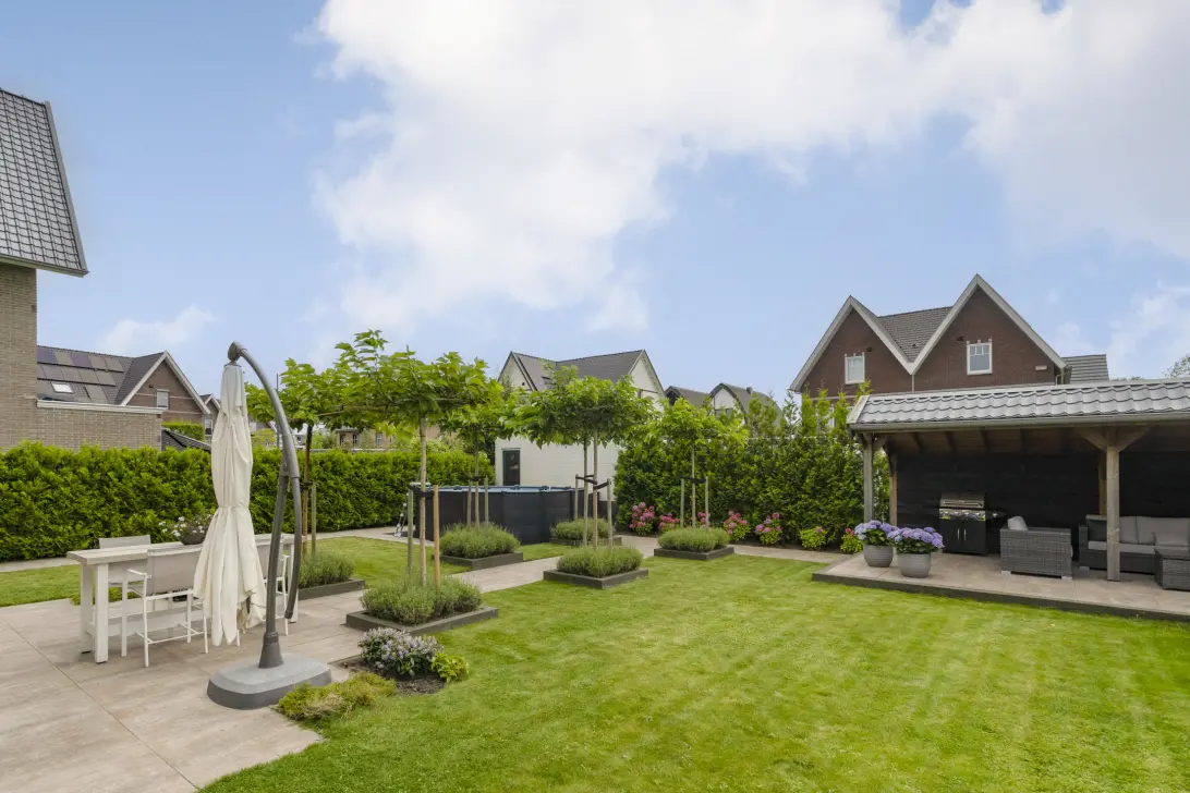 Met een woonoppervlakte van maar liefst 181 m², 4 (mogelijk vijf) ruime slaapkamers, twee luxe badkamers en een sfeervolle woonkeuken, is dit een droomhuis voor gezinnen die op zoek zijn naar comfort en stijl. De villa, gebouwd in 2020, straalt warmte en luxe uit en is tot in detail afgewerkt. De zonnige tuin op het zuidoosten biedt veel privacy en ruimte, zodat u in alle rust kunt genieten. Daarnaast is er een vrijstaande overkapping met loungehoek en een prachtig zwembad. De woning beschikt bovendien over een ruime garage en parkeergelegenheid voor meerdere auto’s op eigen terrein.