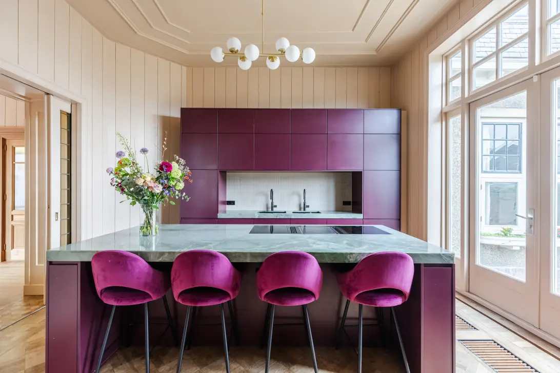 De in 2024 vernieuwde leefkeuken vormt het moderne hart van de woning. Deze is uitgevoerd met hoogwaardige Miele inbouwapparatuur, waaronder meerdere ovens, een inductiekookplaat met geïntegreerde teppanyaki plaat, twee vaatwassers, een royale koelkast en vriezer en een Quooker met bruiswaterfunctie. Natuurstenen werkbladen, brinjal kleurige kasten en een houten vloer geven de ruimte een tijdloze en hoogwaardige uitstraling. Via openslaande deuren staat de keuken in directe verbinding met de achtertuin.