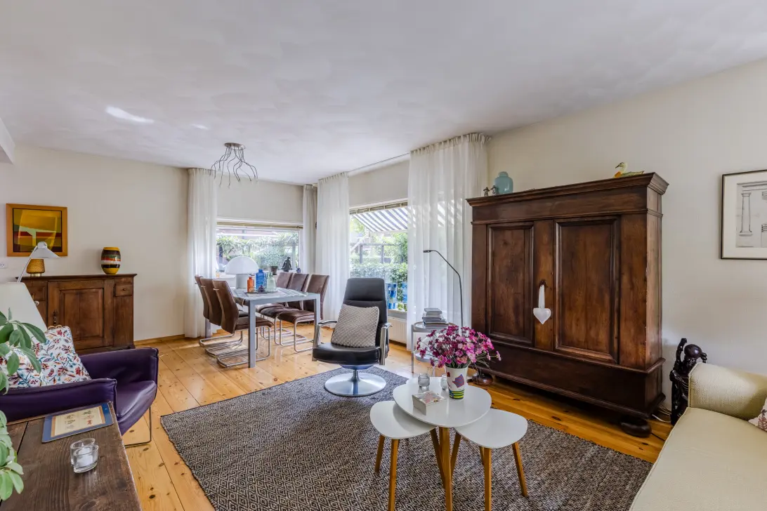 • Ruime woonkamer met grote raampartijen
