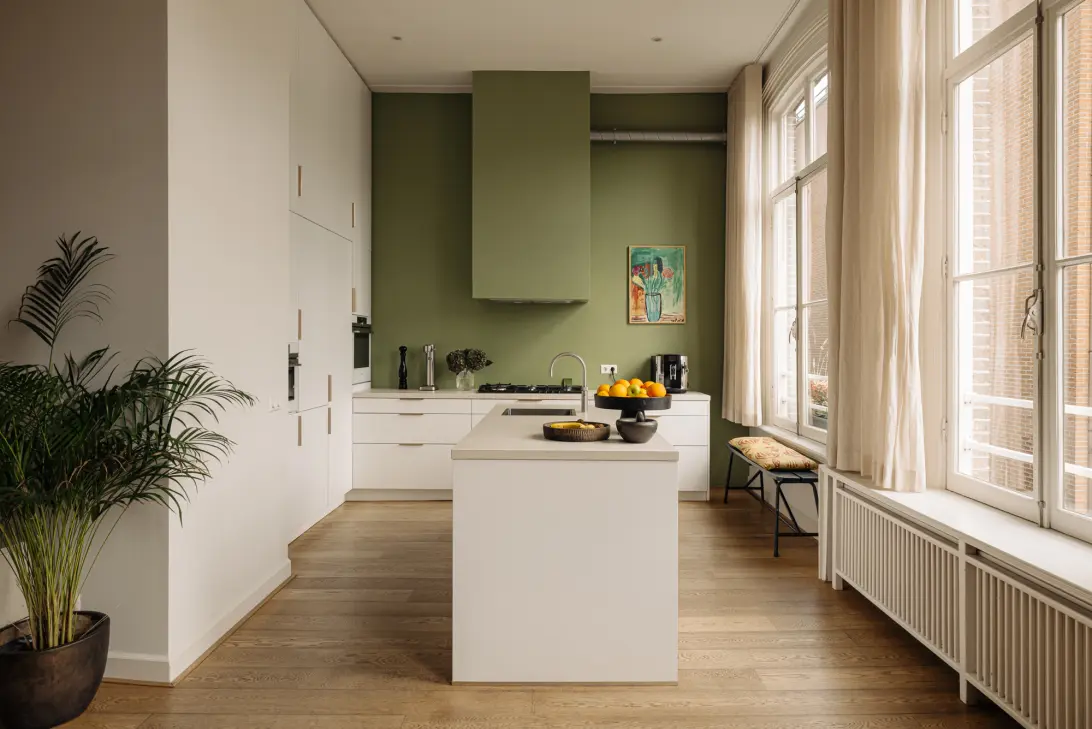 Het appartement is tot in detail verzorgd, met recent geplaatst vacuümglas, optimaal buitenschilderwerk, en hoge plafonds die het lichte, ruimtelijke karakter versterken. Via de fraaie openslaande deuren aan de voorzijde bereik je het klassieke bordes met een prachtig uitzicht op het groen van het Frederiksplein – een zeldzame combinatie van wonen in de stad én in het groen.
