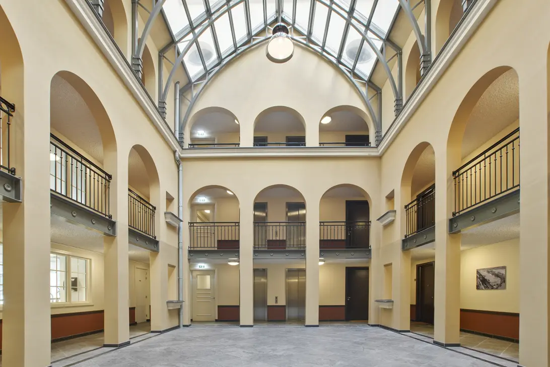Met als hart en entree van het gebouw “The courtyard” ofwel Atrium, een indrukwekkende entree om thuis te komen waarbij je altijd wordt herinnerd aan het feit dat je in iets unieks woont. De “court” heeft een glazen piramide en daarboven is het geheel volledig open met een schitterende afwerking. Deze bijzondere kwaliteit en afwerking zie je terug in de woning. Dit alles voel je en beleef je, daar kan je geen prijskaartje aan hangen!