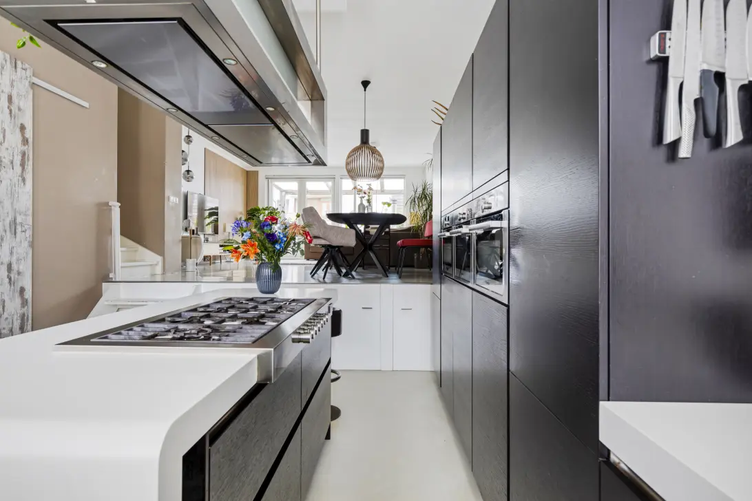 Upon entering, you immediately feel at home. The playful level differences give each room its own charm, without losing the connection. In the spacious living room, you can create corners for cosy get-togethers, without compromising your privacy. Children have plenty of space to play, while you enjoy peace and quiet. And the kitchen? You'll never want to leave! From cooking on a 7-burner gas hob to dining with friends, this will truly be the heart of the home.