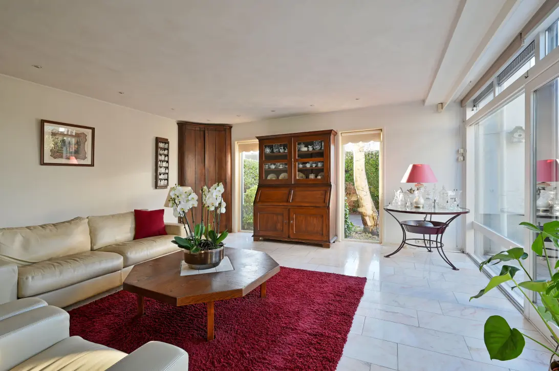 De woonkamer is royaal, uitnodigend en bovenal: ongekend licht. Aan de achterzijde is een uitbouw met openslaande deuren en een lichtstraat die de leefruimte heeft vergroot. Ook zijn er aan de zuidgevel twee kamerhoge raampartijen toegevoegd die zorgen voor extra zonlicht in de woonkamer en zicht op het achterste deel van de tuin.